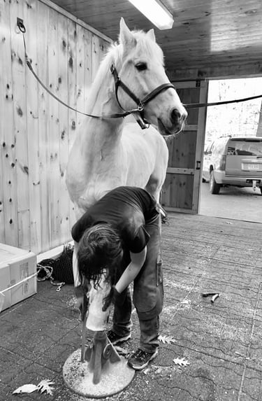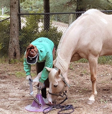 • Podiatry • - science-based care of the hoof and lower limb, centered on restoring and maintaining optimal biomechanical function. It emphasizes routine, whole-body alignment through strategic adjustments to the natural hoof—primarily focused on correcting distortion and re-establishing healthy hoof capsule balance. This balance supports proper load distribution, functional movement, and structural stability of the internal hoof and limb anatomy. The practice enhances soundness, promotes comfort, and supports the long-term integrity of the horse’s locomotor system.